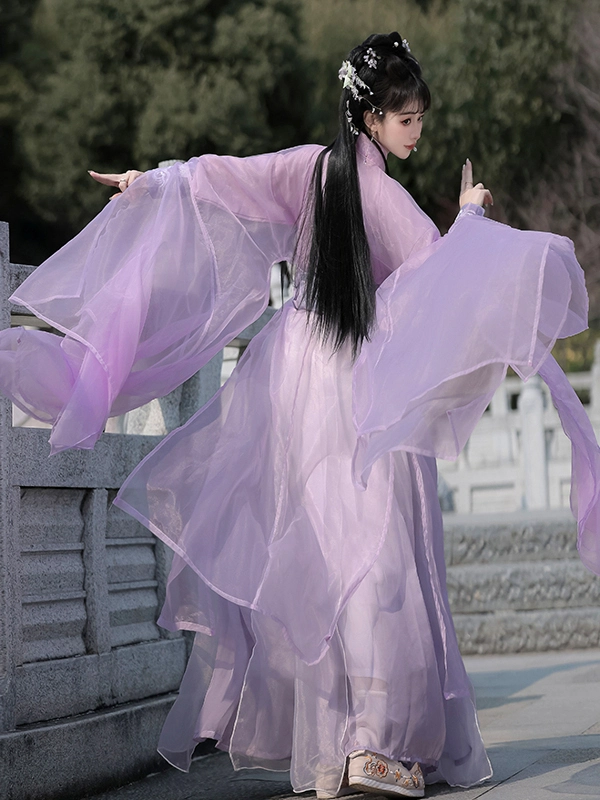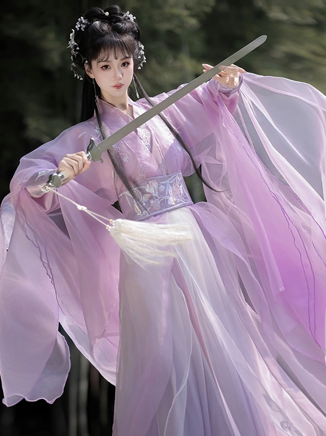 طقم رداء هانفو مطرز متدرج اللون مستوحى من نمط ووشيا من وي جين