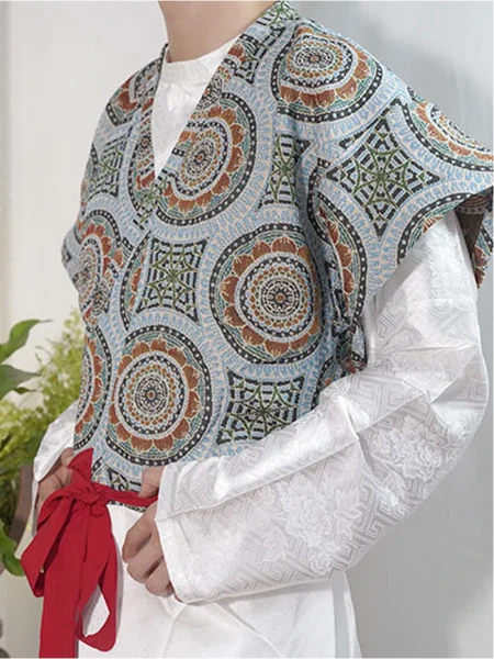 Tang-dynastiet Hanfu Cross-Collar Geometric Jacquard Banbi Unisex