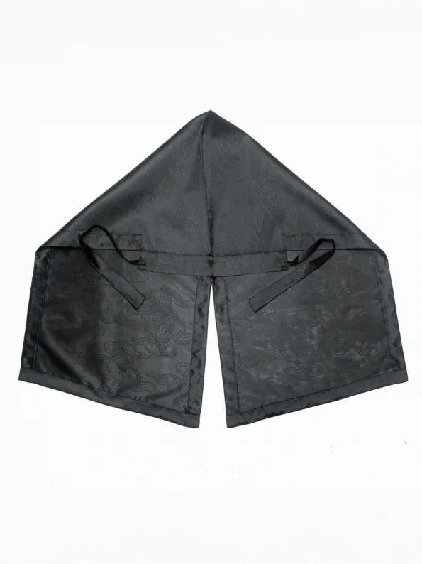 Denne Fujin-hat i Ming-stil er fremstillet af sort, mørkt mønstret gaze med et motiv af en firedobbelt Ruyi-sky, der symboliserer lykke og forfinelse. Den er let og åndbar og udtrykker den ynde og lærde ånd, som beundres i traditionel kinesisk påklædning.