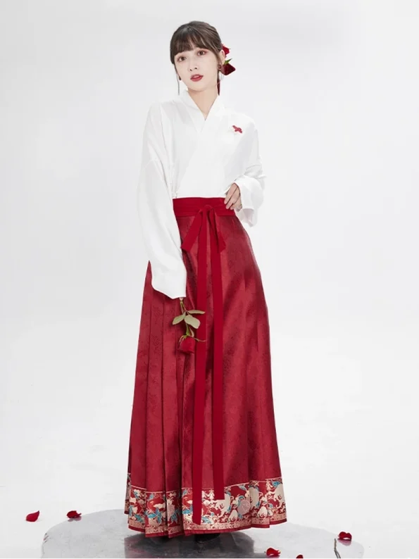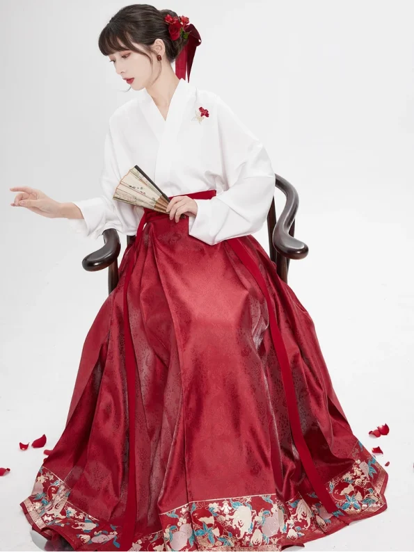 Rød brokade Mamian Qun Set - Forlovelse & bryllup Hanfu Outfit - Hanfu Way: Traditionelt og moderne kinesisk Hanfu-tøj til alle lejligheder