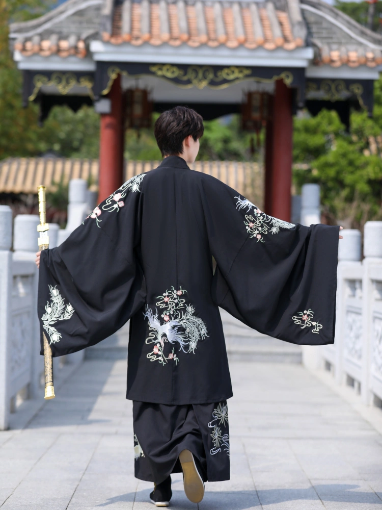 Wei Jin Hanfu sort broderi Qiyaoqun sæt til mænd