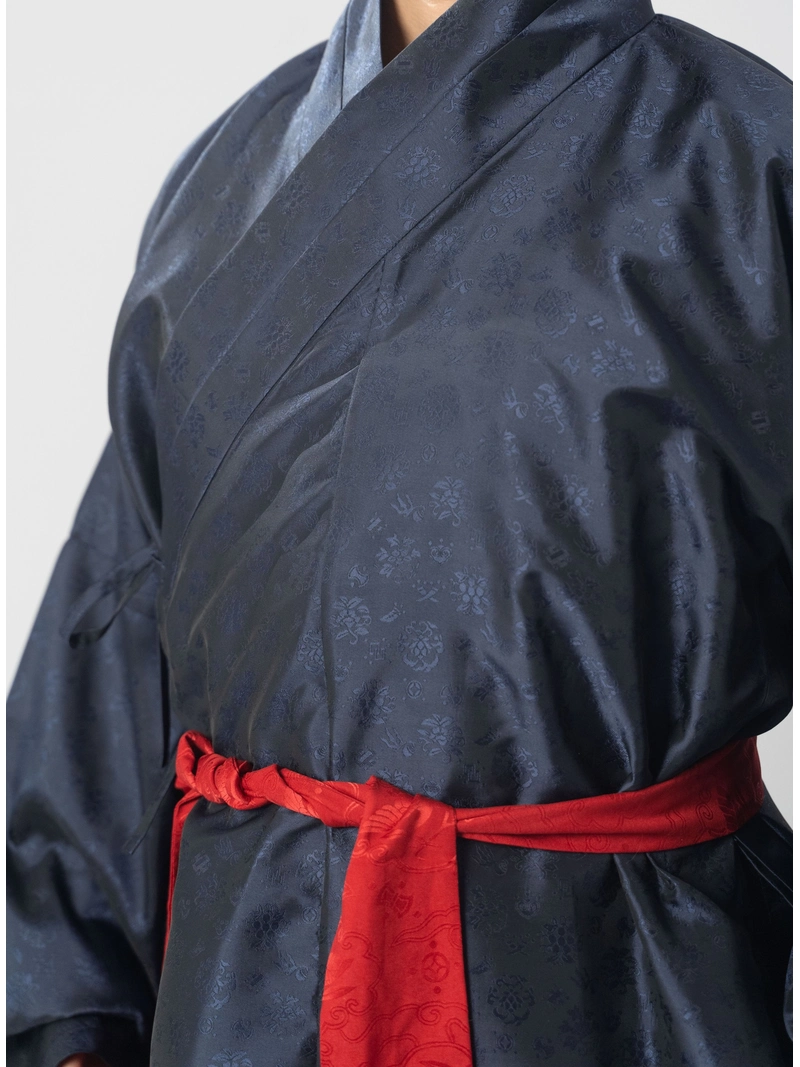 Diese plissierte lange Robe im Ming-Stil ist eine originalgetreue Reproduktion der frühen Männerkleidung der Ming-Dynastie, inspiriert von der plissierten Robe, die im Grab des Prinzen Lu Huang ausgegraben wurde. Sie verfügt über seitliche Falten, schmale Ärmel und einen traditionellen, flachen Schnitt, der die raffinierte Silhouette der frühen Ming-Kleidung nachbildet.