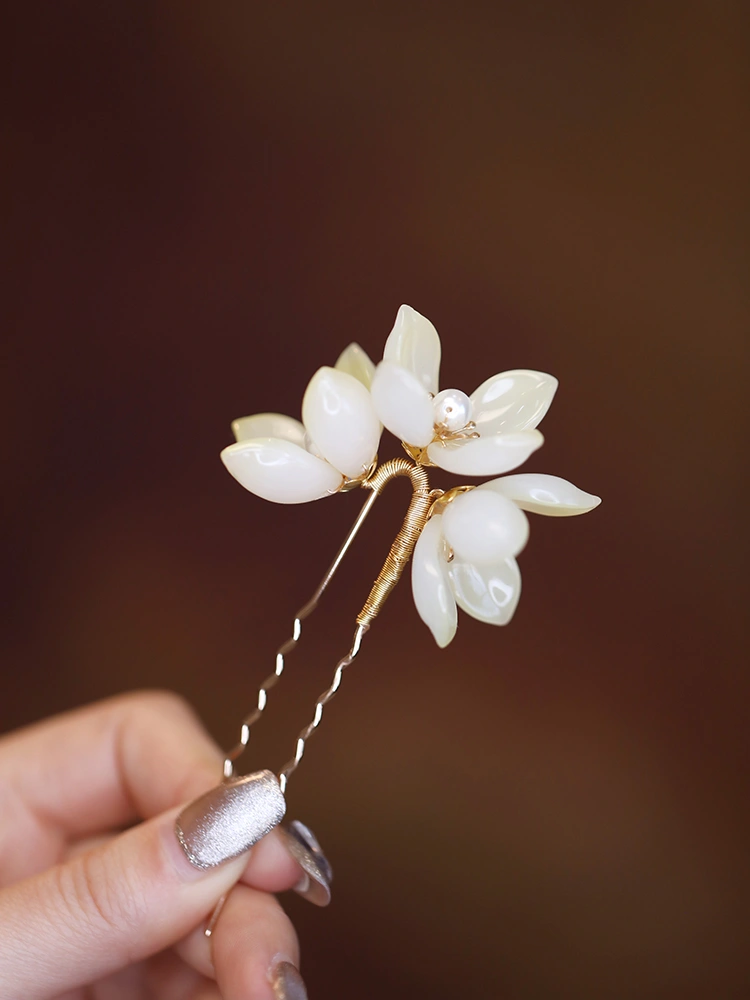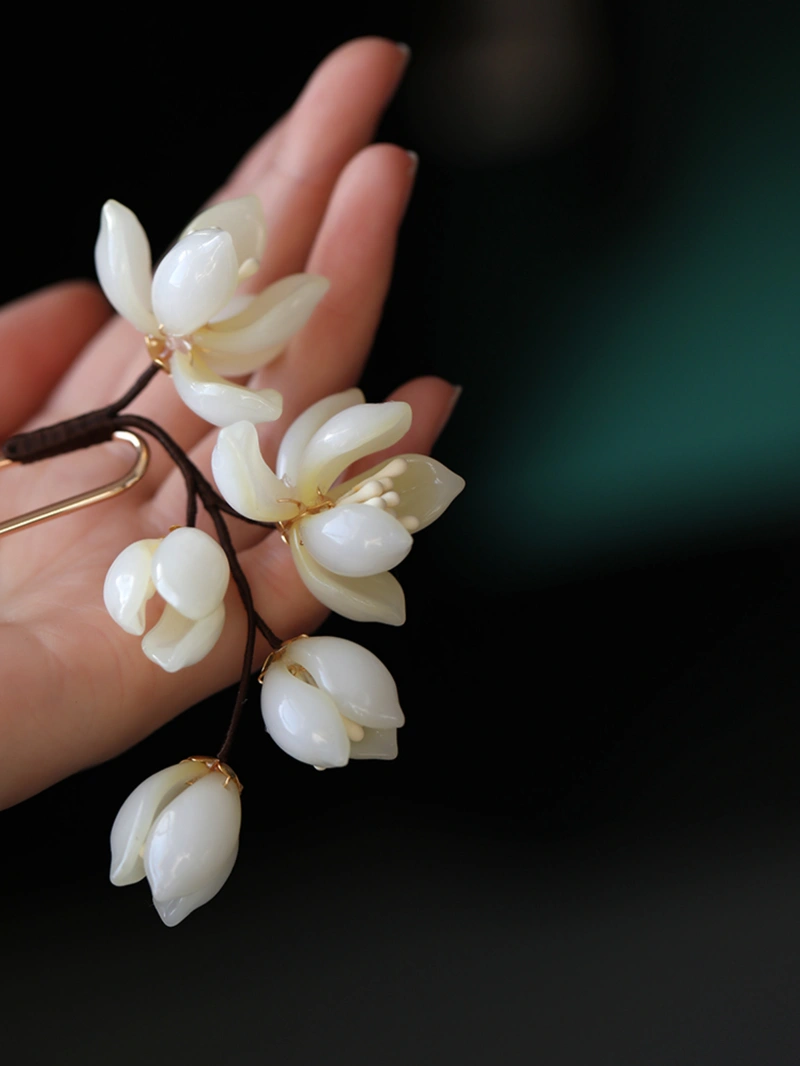 Weiße Magnolienblüten-Haarnadel im neuen chinesischen Stil