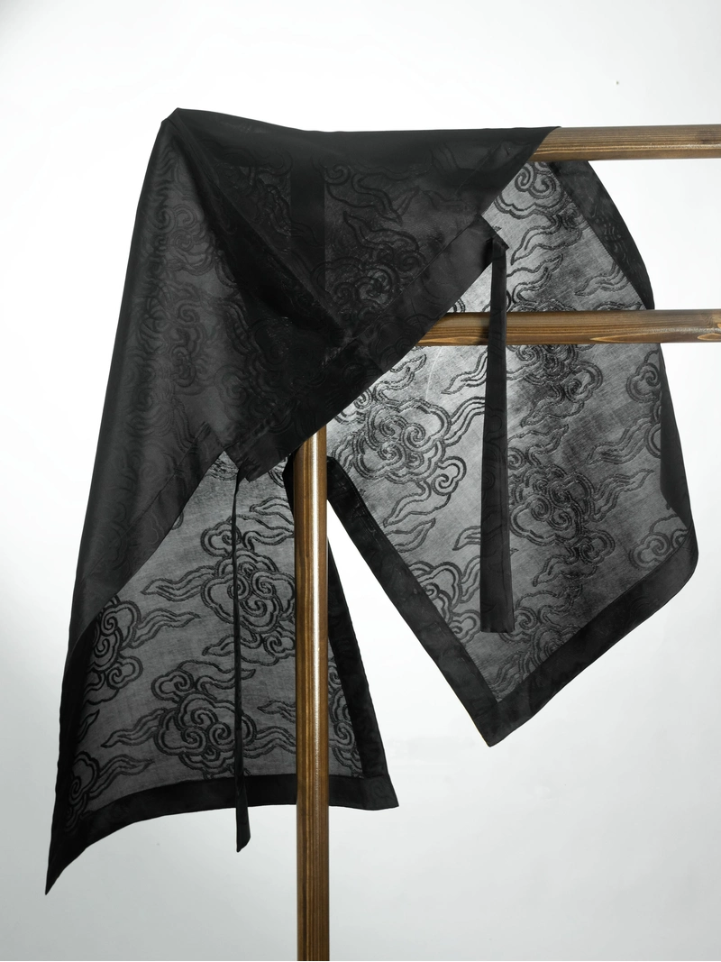 Este sombrero Fujin de estilo Ming está confeccionado en gasa negra oscura con el motivo de la nube cuádruple Ruyi, símbolo de auspiciosidad y refinamiento. Ligero y transpirable, encarna la gracia y el espíritu erudito admirados en la indumentaria tradicional china.