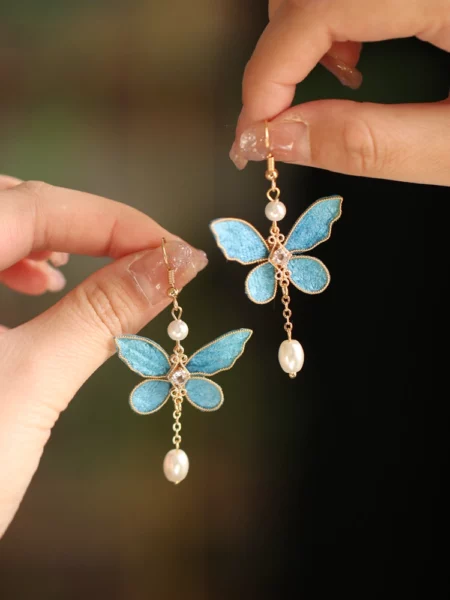 Handmade Blue Butterfly Earrings