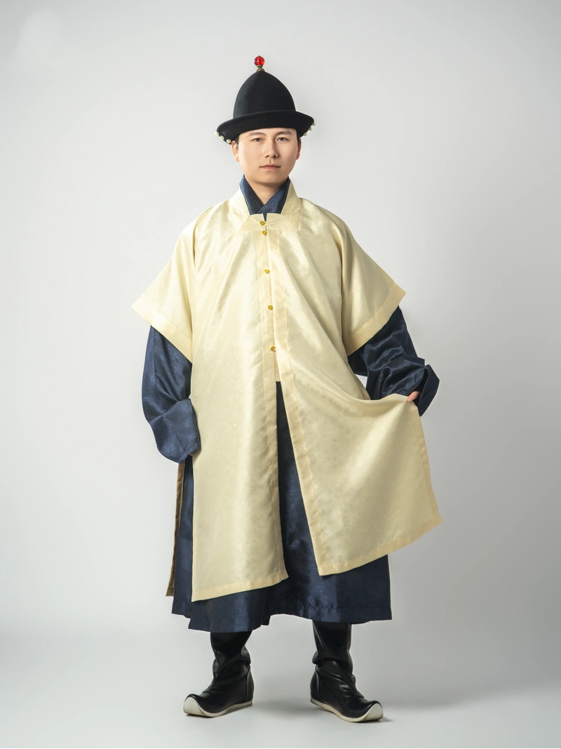 Questo gilet Zhaojia in stile Ming (罩甲) si ispira al tradizionale Niubi Zhaojia con collo quadrato indossato da guardie, attendenti e soldati a cavallo durante la dinastia Ming. Caratterizzato da un taglio strutturato con quattro spacchi laterali e un design aperto a mezza manica, unisce funzionalità e autenticità storica.