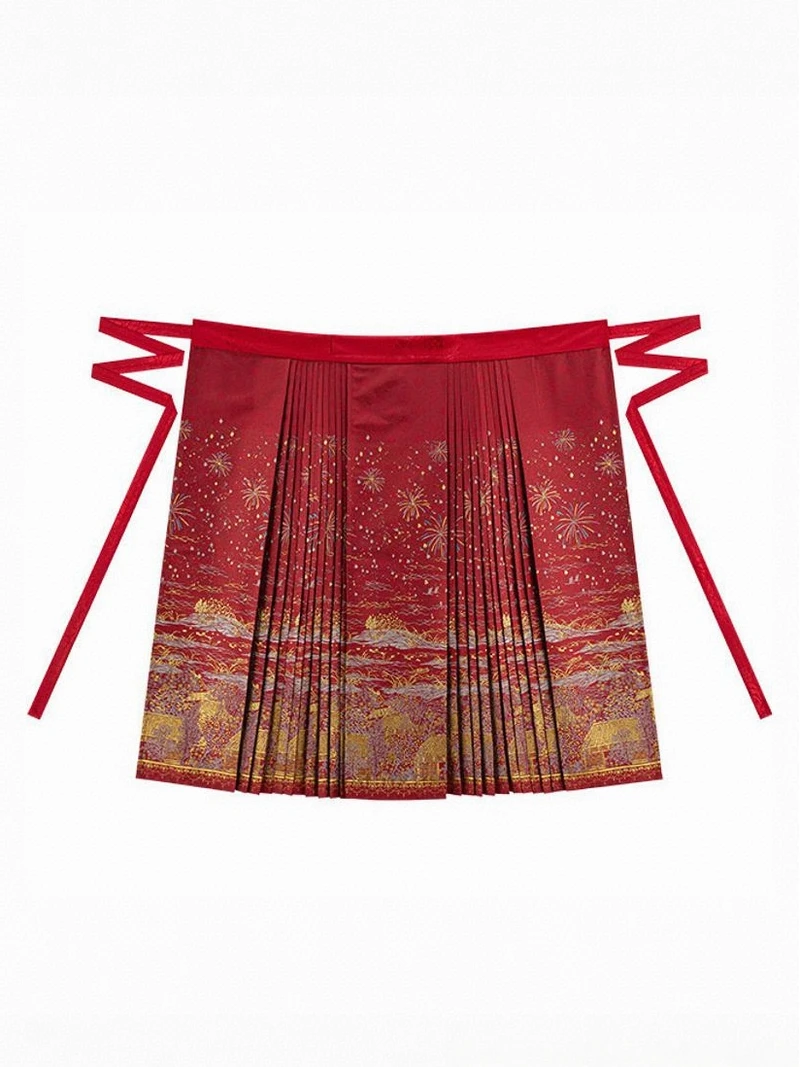 Crafted using colourful gold-thread brocade, this Mamian Qun offers both historical elegance and eye-catching artistry, making it ideal for festive Hanfu styling, celebrations, photography, and special occasions.
