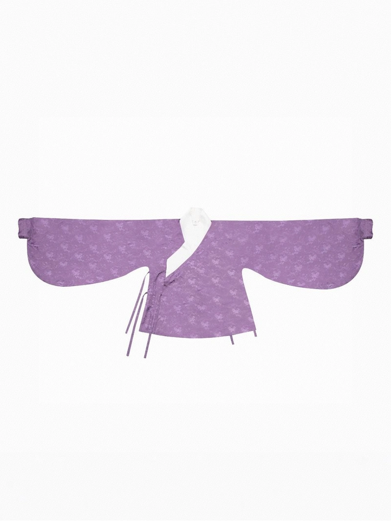 インナーシャツ(クロスカラー・ピパ袖):パープルのジャガード生地と白の柄襟のコントラスト