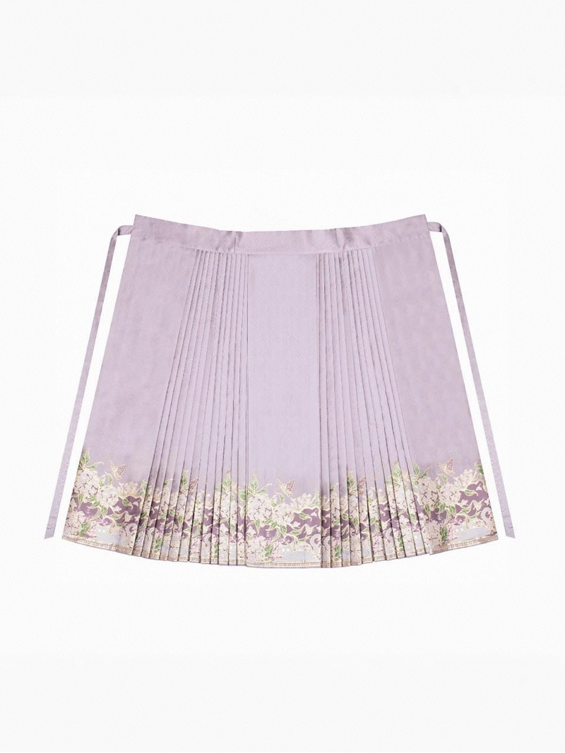 マミアン・スカート金糸をアクセントにした錦の荘華デザイン、4.5mの裾、7重のマイクロ・ステップ構造