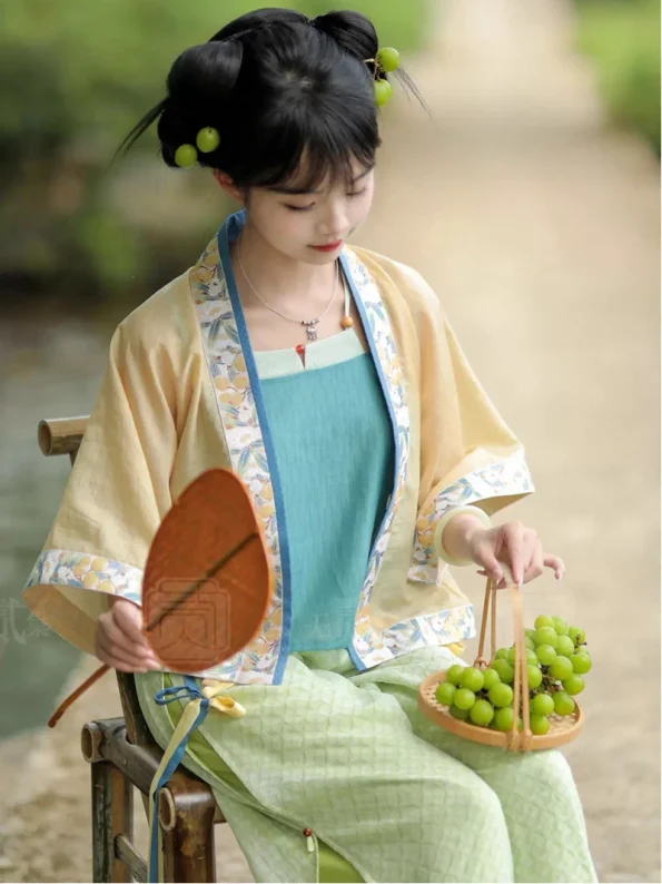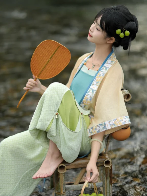 Inspired by the soft golden tones of ripened loquats, this Loquat Journey (枇杷行) collection blends Hanfu gaya lagu elegance with modern casual comfort. Each piece can be worn alone or paired with other garments from the same series for a coordinated summer look.