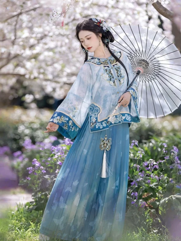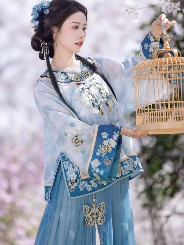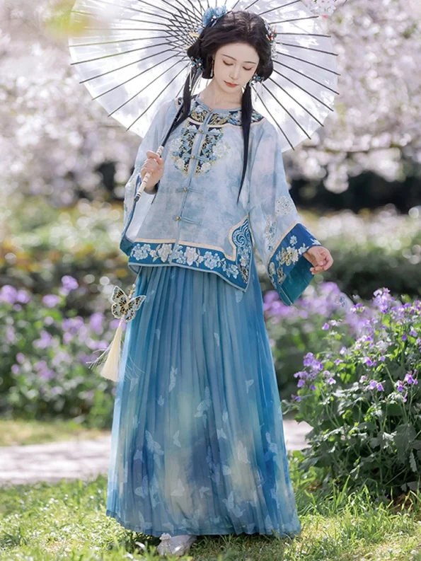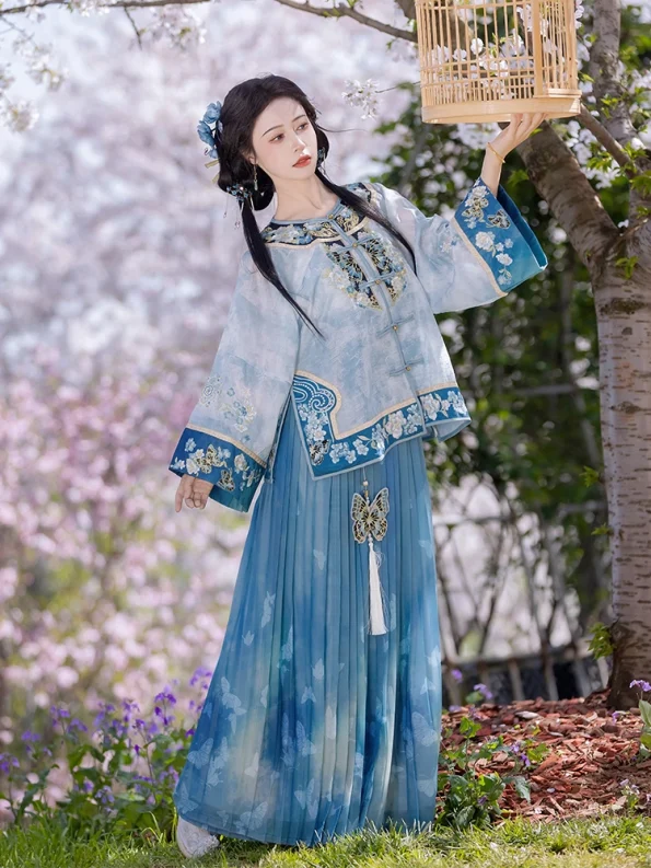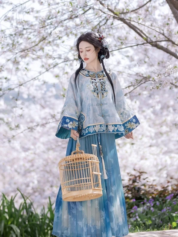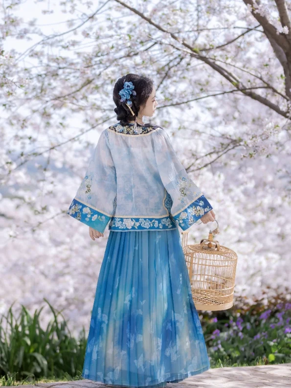 Deze rokenset is absoluut prachtig - rijk kobaltblauw met delicaat borduurwerk dat echt de elegantie van de traditionele Chinese mode weergeeft. De plooien vloeien sierlijk en geven een prachtig silhouet als ik beweeg.