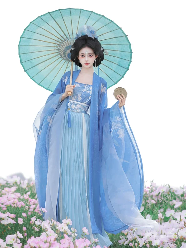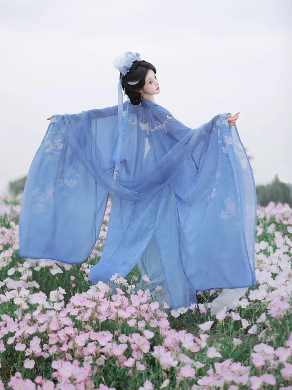 Omarm de tijdloze schoonheid van Hanfu met deze Traditioneel Chinees Stijl Blauw Qiyao Qun Setgeïnspireerd door klassieke elegantie en gemaakt om elke dag te dragen. Het vloeiende gewaad met wijde mouwen heeft ingewikkelde plaatsingsprints in serene blauwe tinten, gecombineerd met een zacht hemdje en bijpassende Qiyao Qun rok voor een gracieuze gelaagde look. Een delicaat geborduurde jacquard tailleband omsluit het silhouet, terwijl de transparante "Ruyi" gaassjaal een vleugje etherische charme toevoegt. Perfect voor culturele bijeenkomsten, fotografie, festivals of gewoon om een vleugje traditie toe te voegen aan je dagelijkse garderobe.