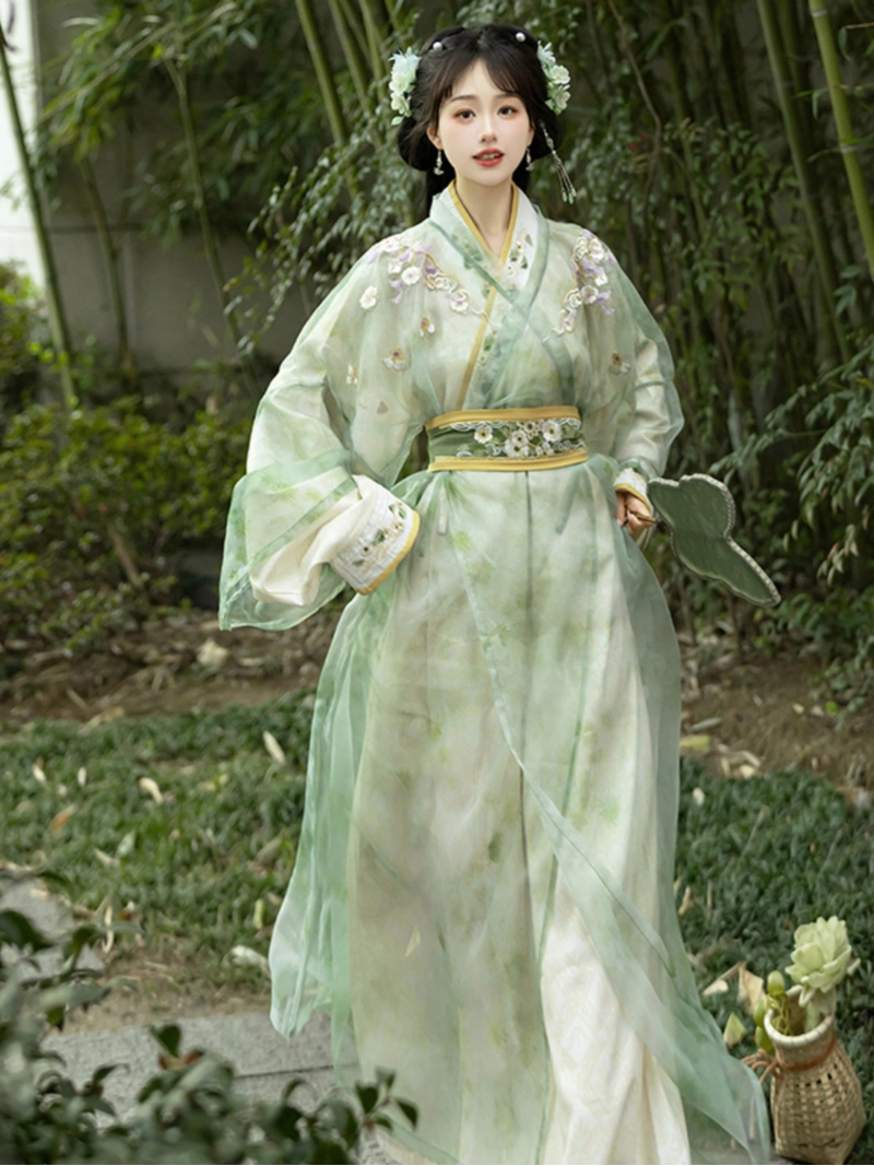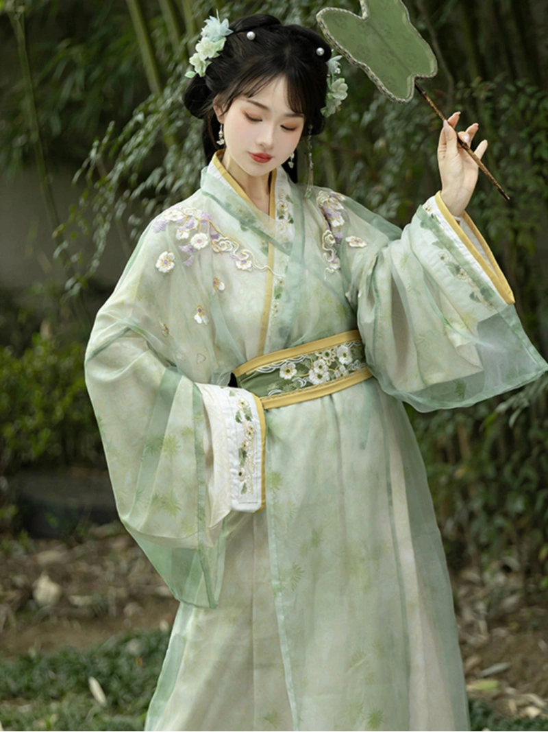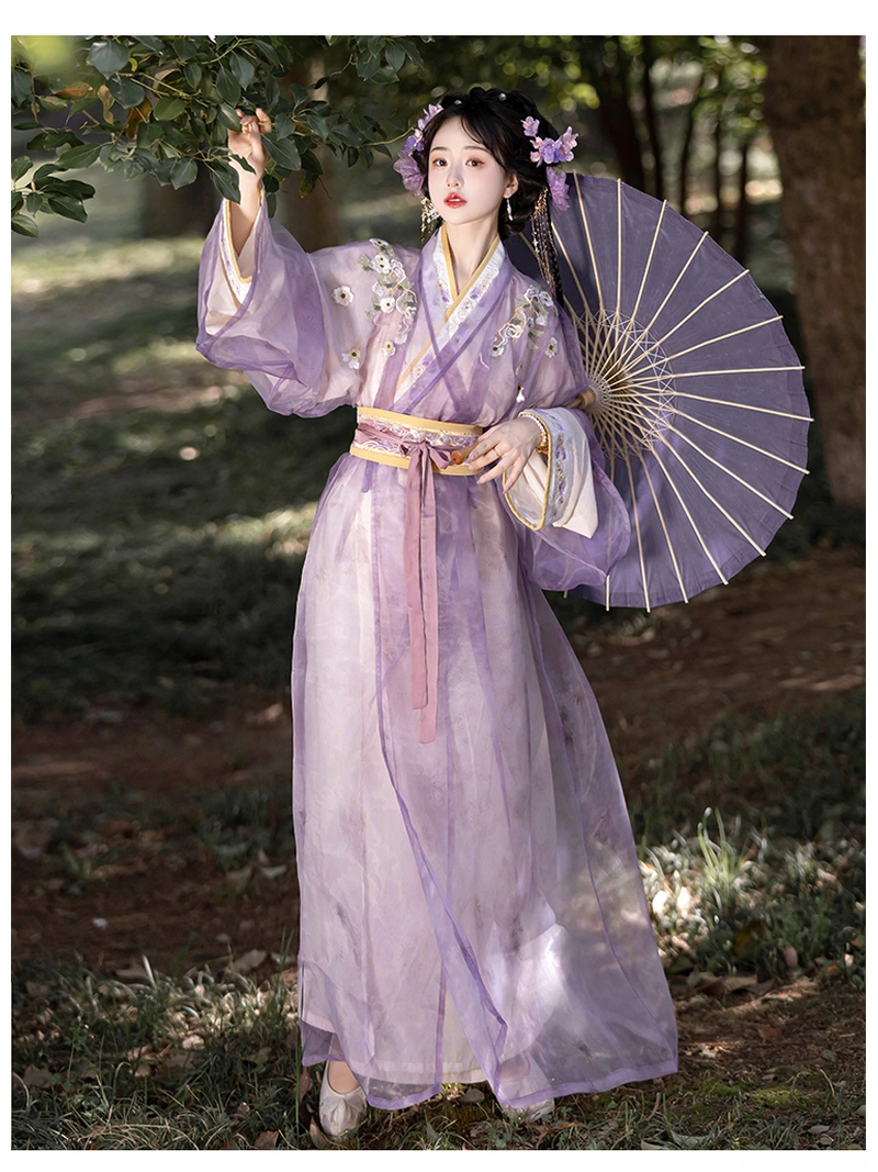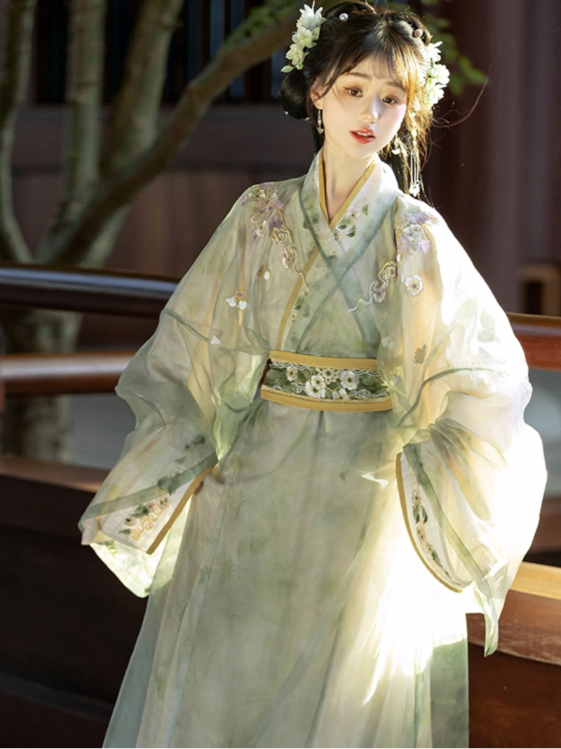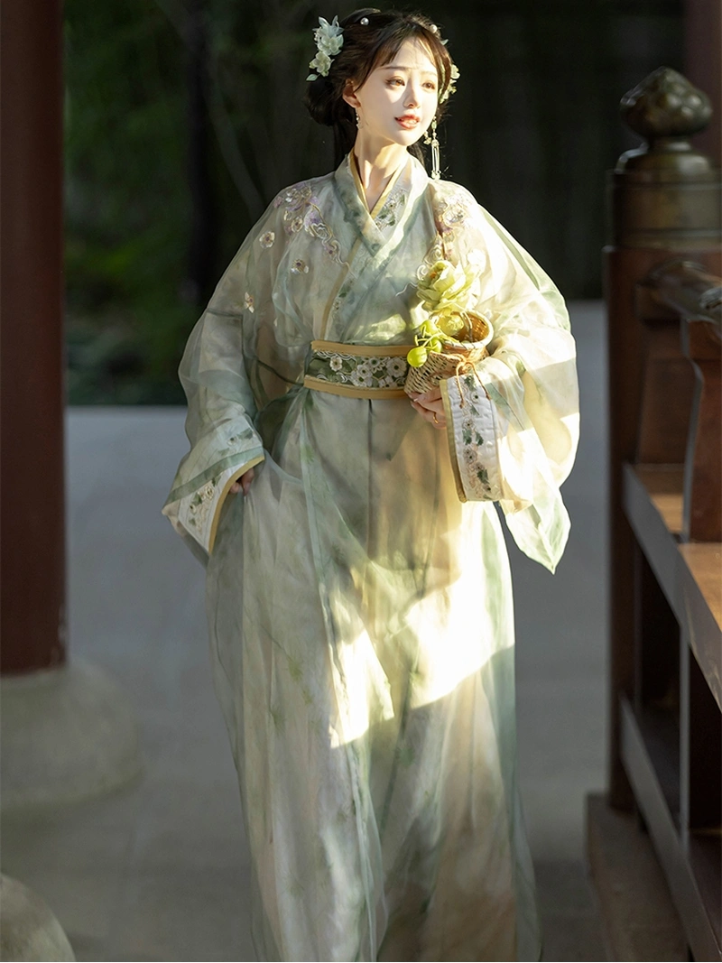 Ervaar verfijnde elegantie met deze Wei-Jin-dynastie Stijl Hanfu Jurk, opnieuw ontworpen voor modern dagelijks gebruik. De lang gewaad met gekruiste kraag (Zhiju) functies lichtgewicht doorschijnende gaasstof met een subtiele glans die een zachte, etherische gloed creëert. Bloemen borduurwerk op de schouders voegt verfijning en een nobel tintje toe, terwijl de bijpassende tailleband benadrukt de natuurlijke ronding van het lichaam voor een zachte, gracieuze look. De luchtig, ademend materiaal zorgt voor comfort tijdens warme lente- en zomerdagen. Verkrijgbaar in serene paarse en groene tinten, Deze gemoderniseerde Hanfu weerspiegelt de rustige schoonheid en poëtische eenvoud van het Wei-Jin tijdperk - perfect voor wie op zoek is naar ingetogen luxe en tijdloze culturele stijl.