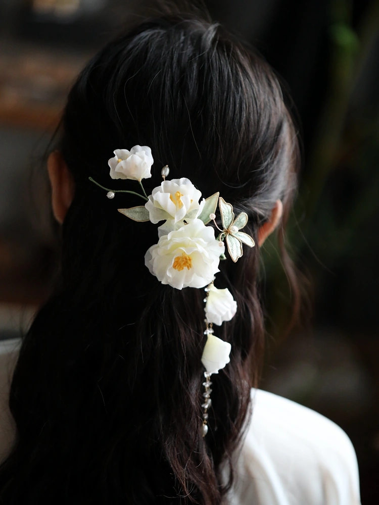 Bring a touch of timeless elegance to your hairstyle with this Chinese Style White Floral Butterfly Hair Clip, designed in a delicate fusion of traditional charm and nature-inspired beauty. The pure white tones symbolise grace, serenity, and purity, making it a perfect complement to Hanfu outfits, cosplay, or special occasions.