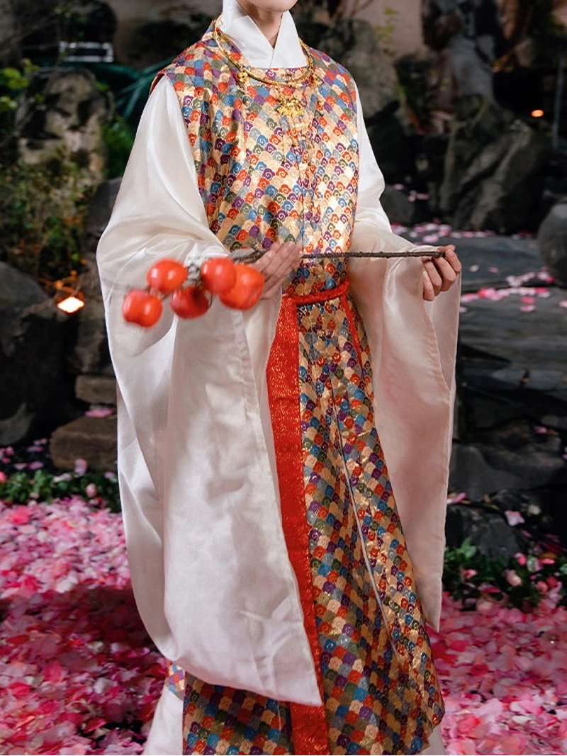 This Ming Dynasty–inspired Hanfu bijia vest combines traditional structure with refined decorative craftsmanship, creating a striking outer layer for both men and women. Designed with a timeless sleeveless silhouette, it reflects the elegance and formality of classic Ming Dynasty attire.