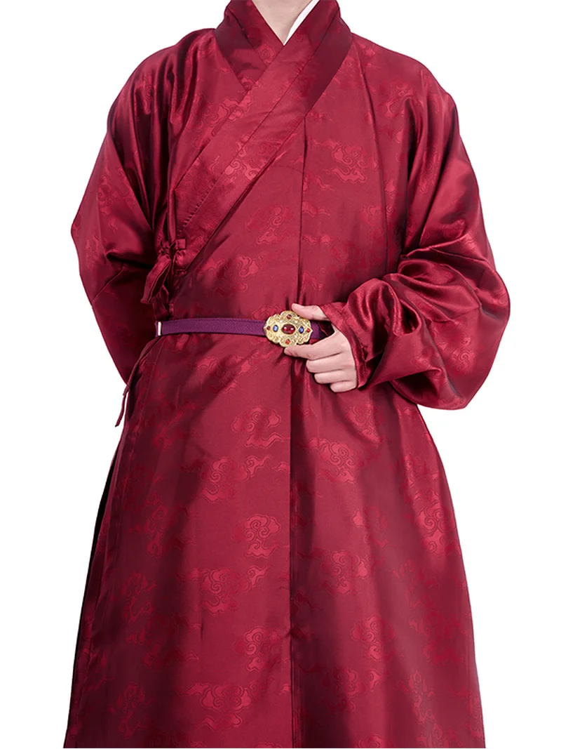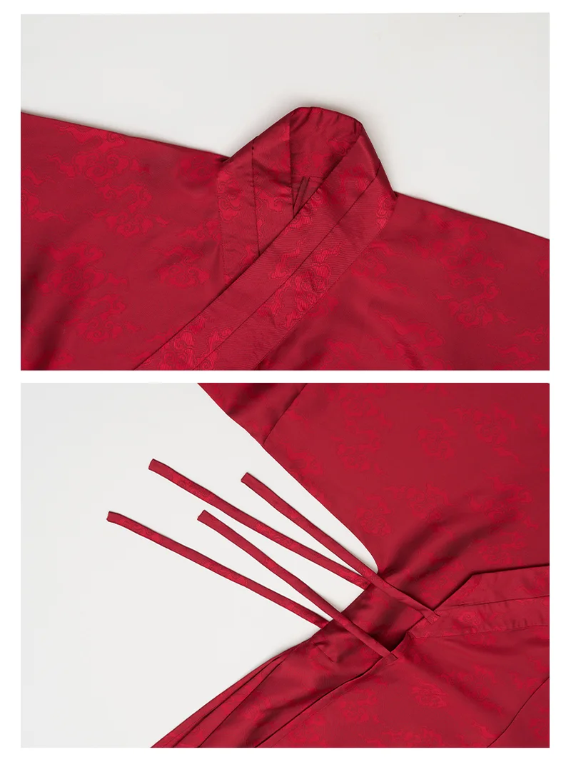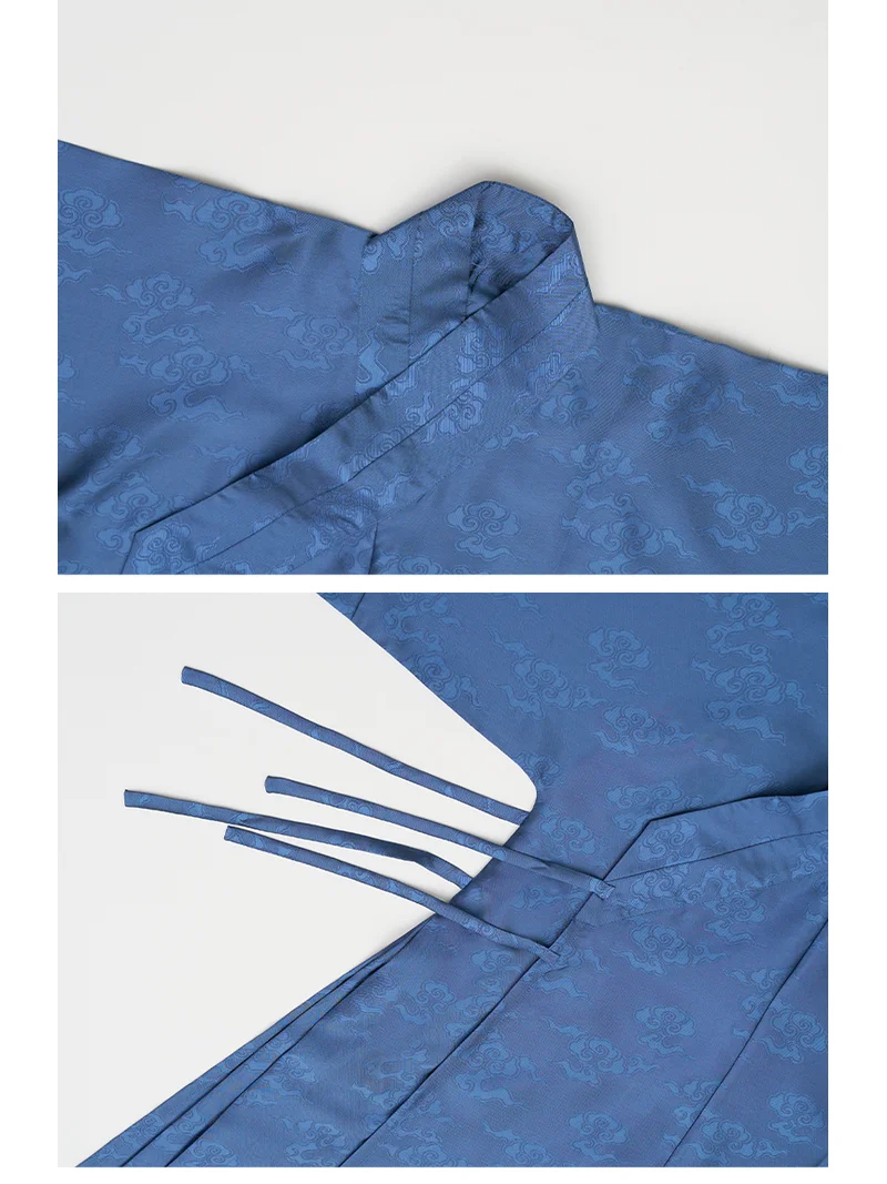 Crafted from jacquard brocade fabric with a subtle Four-Cloud pattern, it captures the understated luxury typical of Ming aristocratic clothing. The deep red and blue colour options symbolise auspiciousness and dignity, making it suitable for traditional ceremonies, cultural performances, or daily elegant wear.
