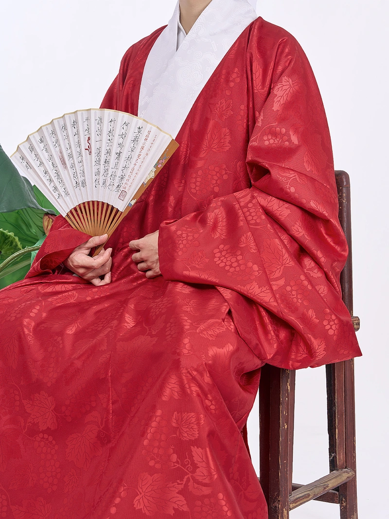 1 * Ming Dynasty Hanfu Dao Robe with Grape Pattern Jacquard