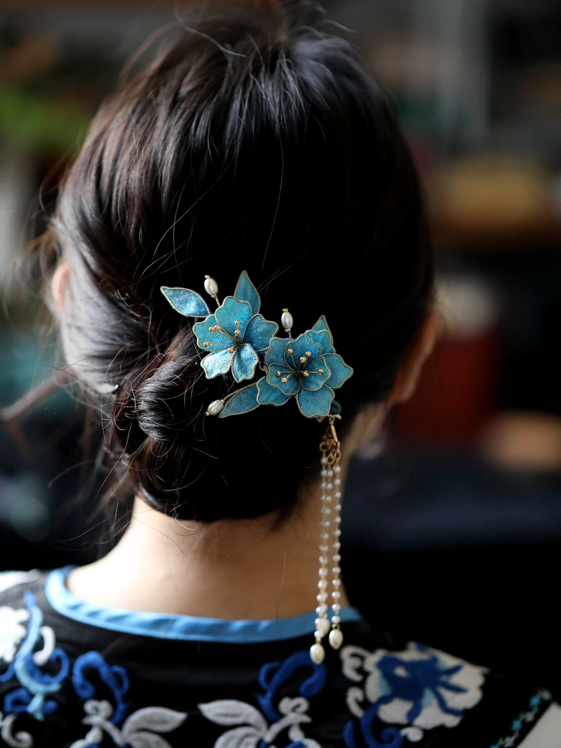 Such hair accessories have long been paired with Qipao (also known as cheongsam), lending a refined flourish to the ensemble