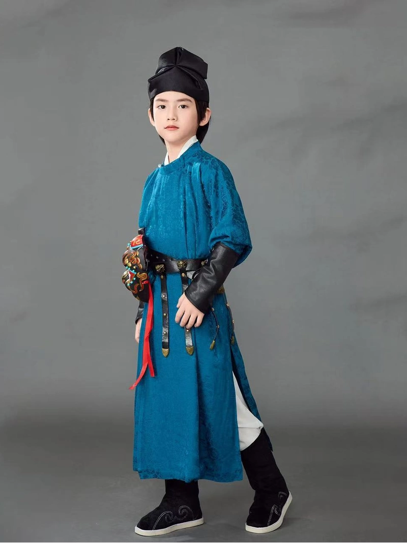 This Tang-style boys’ Hanfu features a classic round collar design, crafted from lightweight polyester, making it comfortable and suitable for spring and autumn wear. Perfect for cultural events, festivals, photoshoots, or everyday casual wear, this traditional outfit blends historical charm with modern comfort.