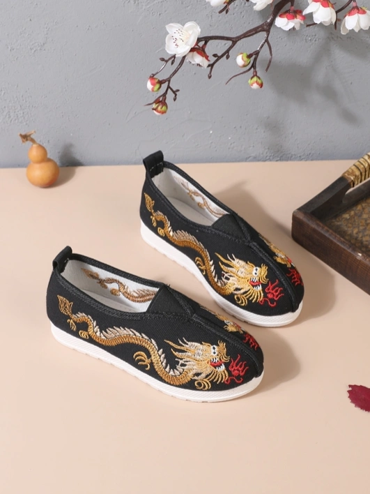 Estes sapatos bordados tradicionais são especialmente projetados para meninos que adoram roupas chinesas de estilo Hanfu ou Tang. Com bordados florais clássicos e tecido de algodão macio, eles combinam conforto com um charme cultural atemporal.