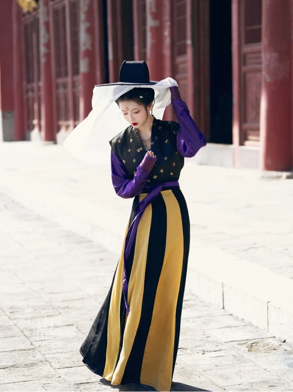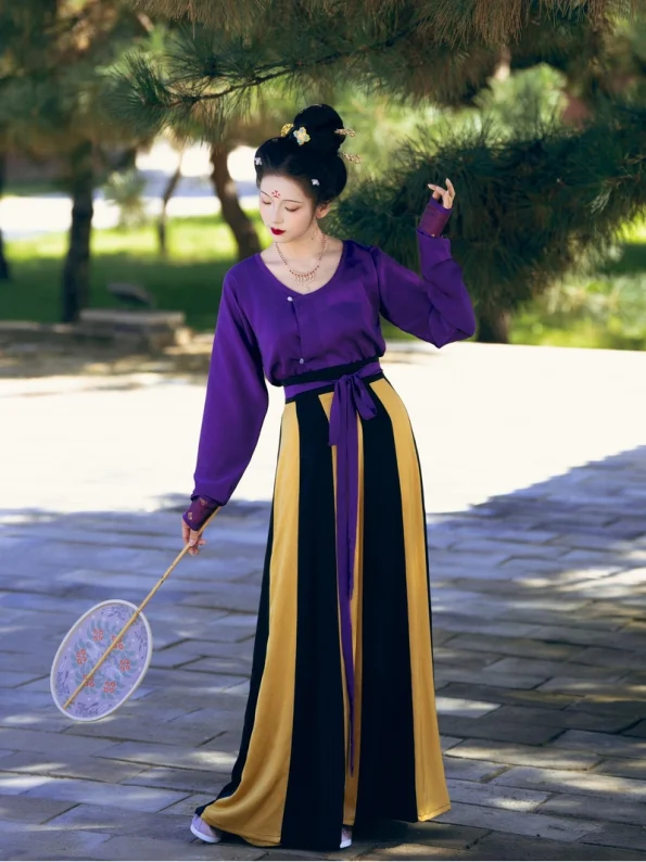 Inspirada na luxuosa arte de tecelagem a ouro do período Wu Zhou, a Dinastia Tang Hanfu Beizi A coleção capta a beleza graciosa e a elegância refinada do vestuário tradicional da era Tang. Esta coleção inclui um robe exterior Beizi em brocado, uma camisa Chuiling Shan de colarinho drapeado e uma saia Poqun plissada - todos disponíveis como peças individuais para um estilo versátil de misturar e combinar. Cada peça é confeccionada com tecidos de jacquard de primeira qualidade, cetim mate ou imitação de acetato, oferecendo um brilho suave e um drapeado requintado. Perfeitas para a primavera, o outono e o inverno, para a cultura, fotografia ou ocasiões festivas.