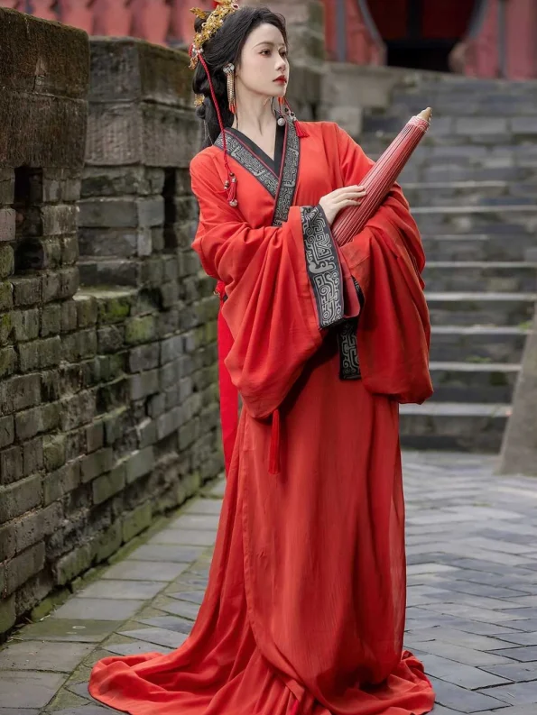 Este vestido de senhora de estilo restaurado Túnica dos Reinos Combatentes é inspirado em achados arqueológicos dos túmulos de Mawangdui Chu, recriando a elegância do antigo vestuário chinês. Concebida com uma bainha e uma silhueta generosa, combina a autenticidade histórica com o artesanato moderno. Perfeito para espectáculos culturais, festivais tradicionais ou coleccionadores que apreciam a beleza do património Hanfu.