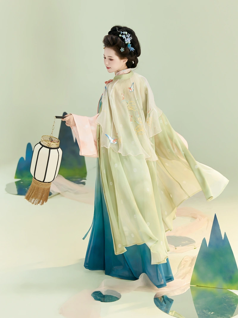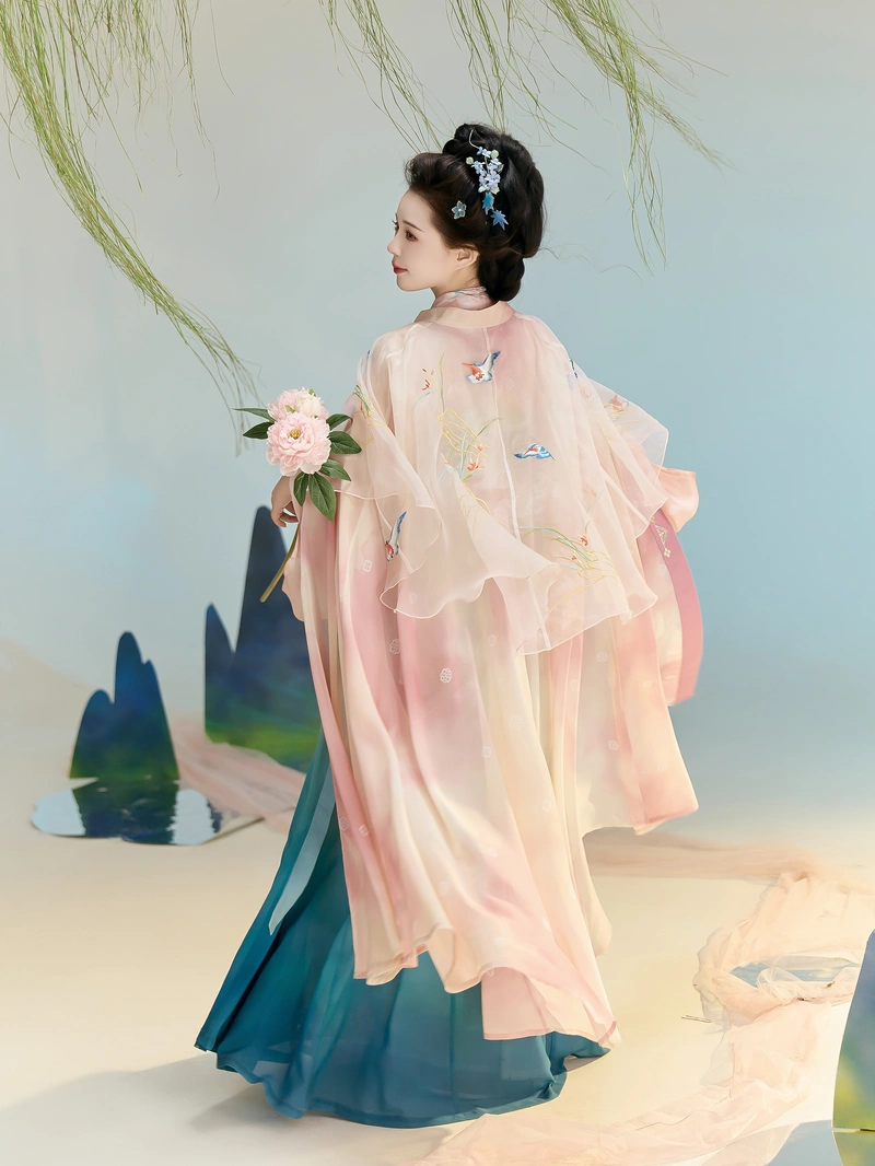 Denna lätta Hanfu-inspirerade kappa är det perfekta accessoaret för vår och sommar. Utsmyckad med delikat broderi och guldprägling ger den en elegant och traditionell touch till vilken Hanfu- eller modern outfit som helst. Den böljande silhuetten förhöjer din helhetsintryck med elegans och fräschör, medan de tre färgalternativen – aprikos, rosa och grön – erbjuder mångsidighet för olika stilar och tillfällen.
