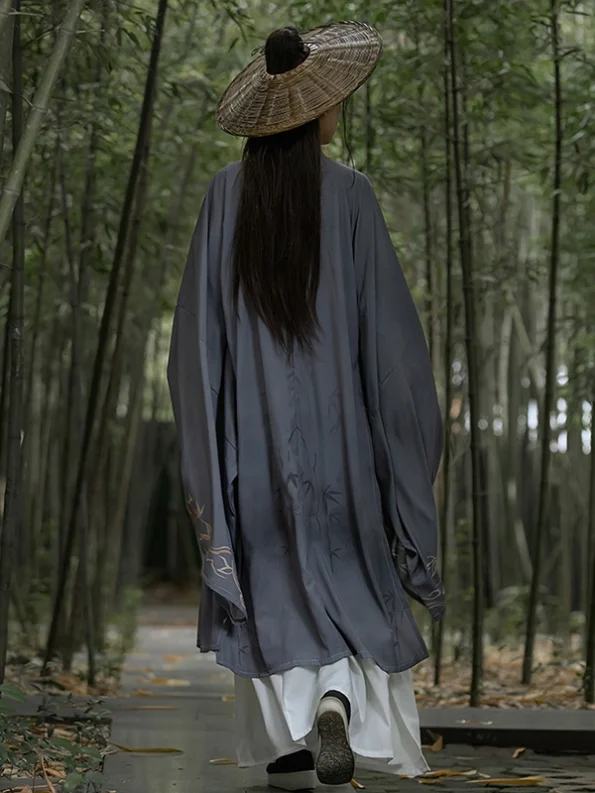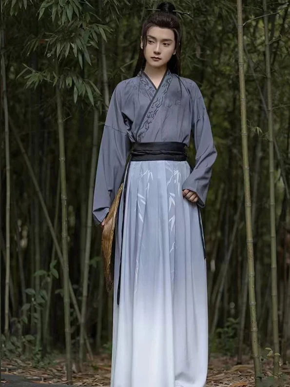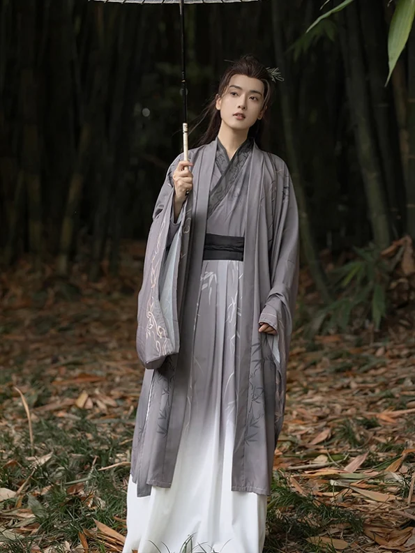 Bộ Hán phục in họa tiết màu xám phong cách Wei Jin dành cho cả nam và nữ