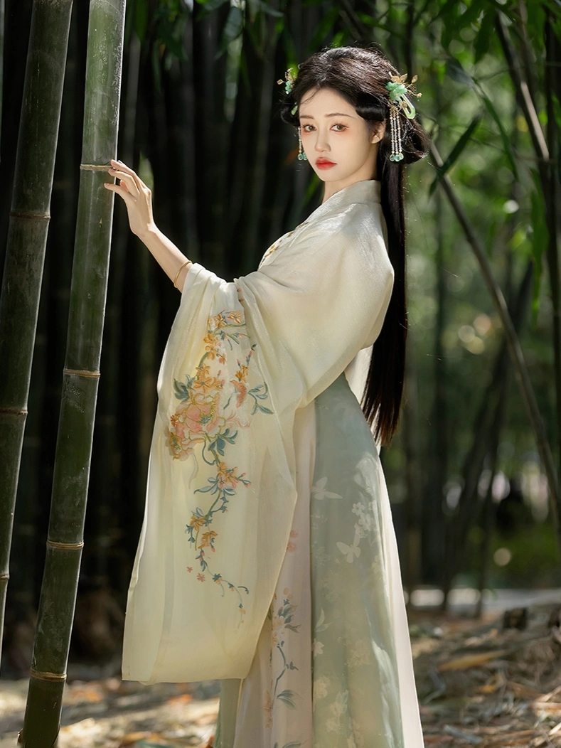 魏晋南北朝绣花宽袖旗袍套装